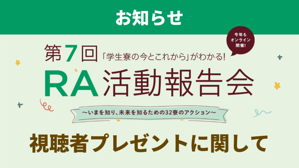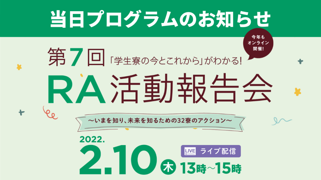 2/10(木)第7回RA活動報告会をご視聴いただきありがとうございました。